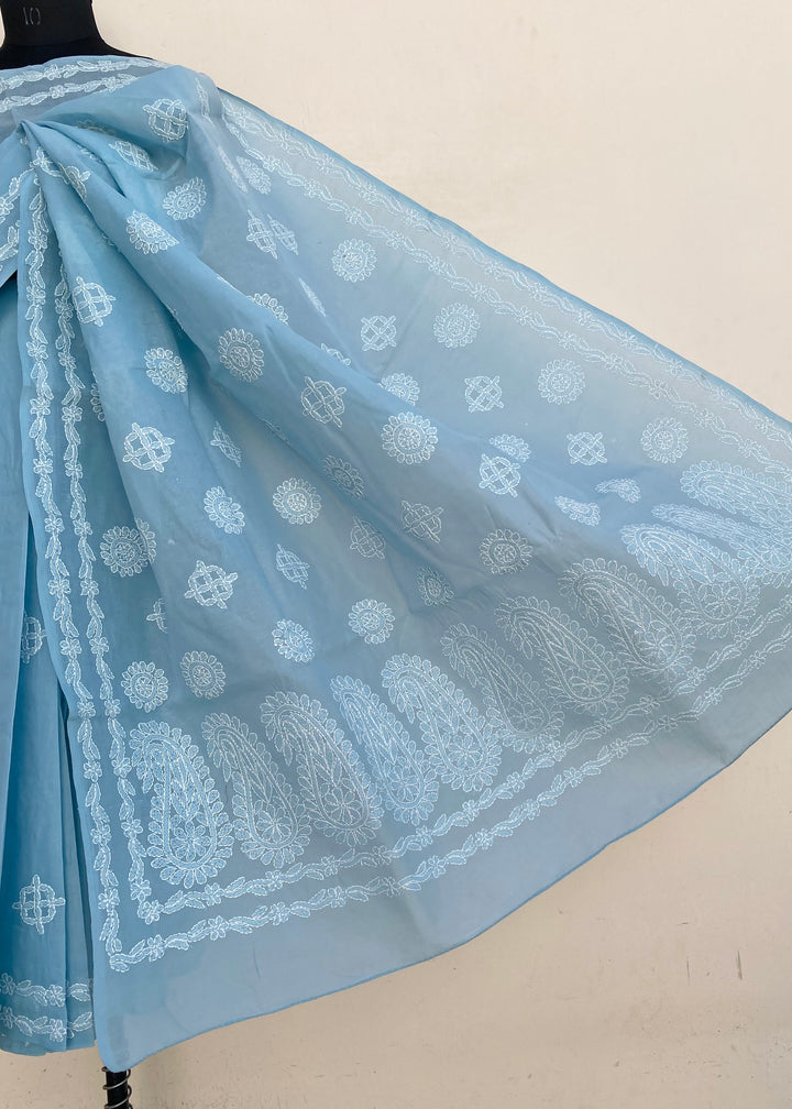 Lucknowi Chikankari Saree Gray Cotton With Blouse