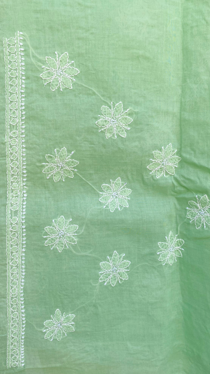 Lucknowi Chikankari Saree Green Cotton With Blouse