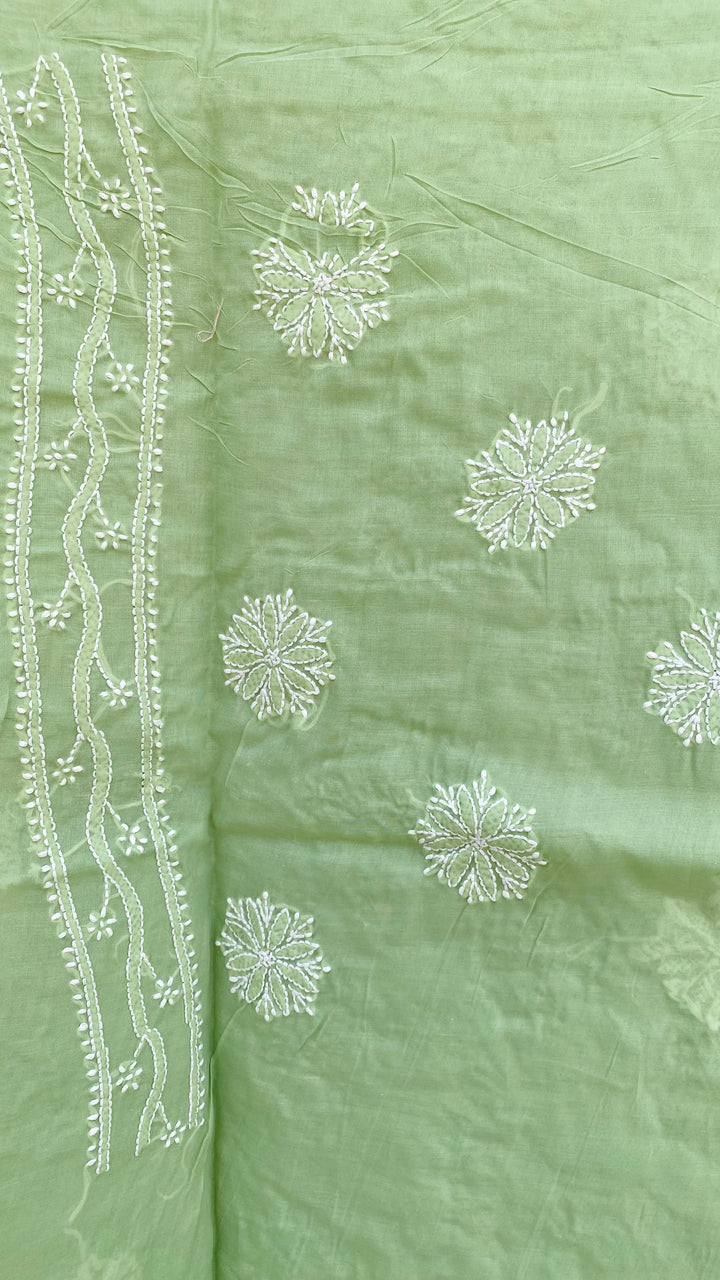 Lucknowi Chikankari Saree Green Cotton With Blouse