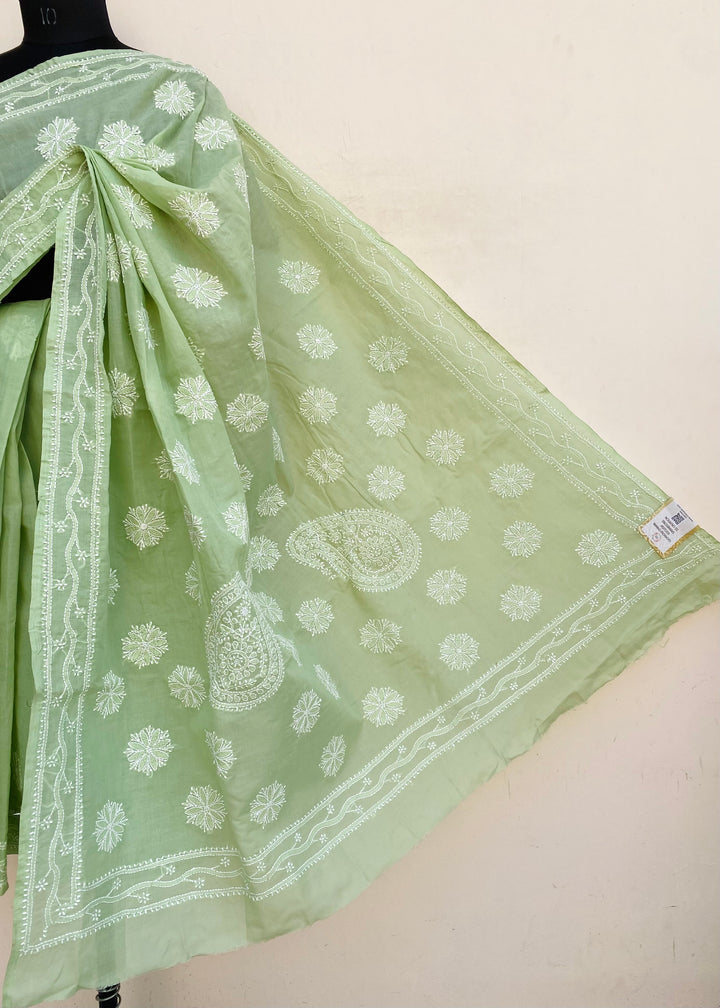 Lucknowi Chikankari Saree Green Cotton