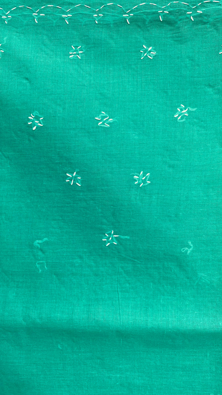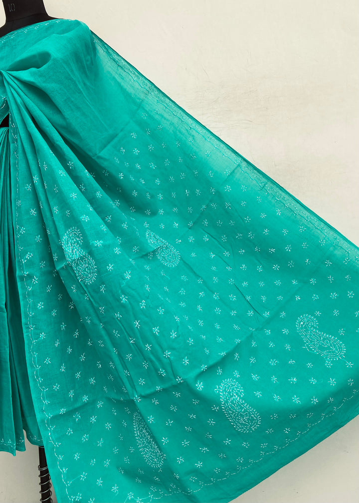 Lucknowi Chikankari Saree Green Cotton With Blouse