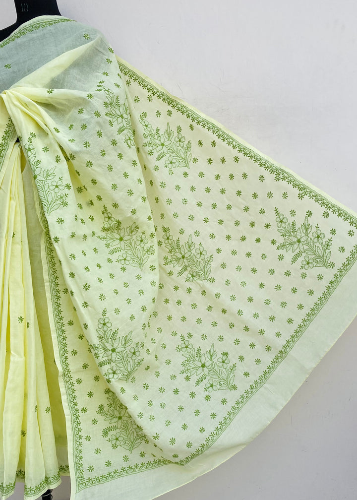 Lucknowi Chikankari Saree Lemon Yellow Cotton With Blouse