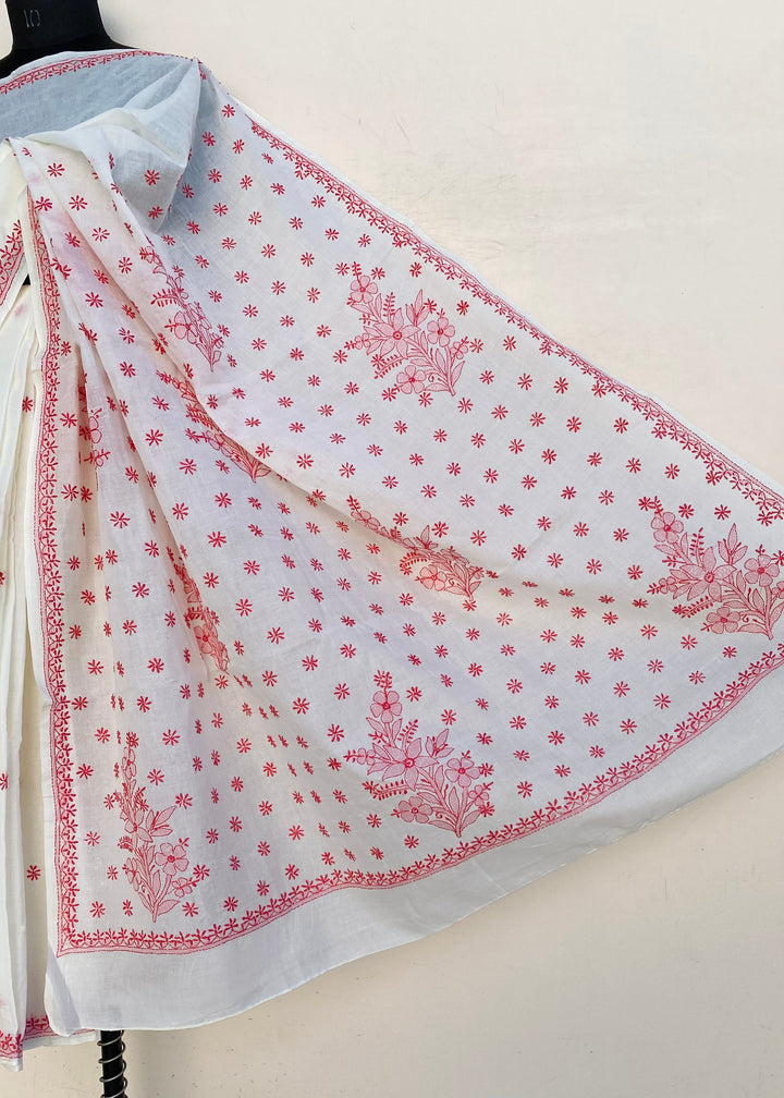 Lucknowi Chikankari Saree Off White Cotton