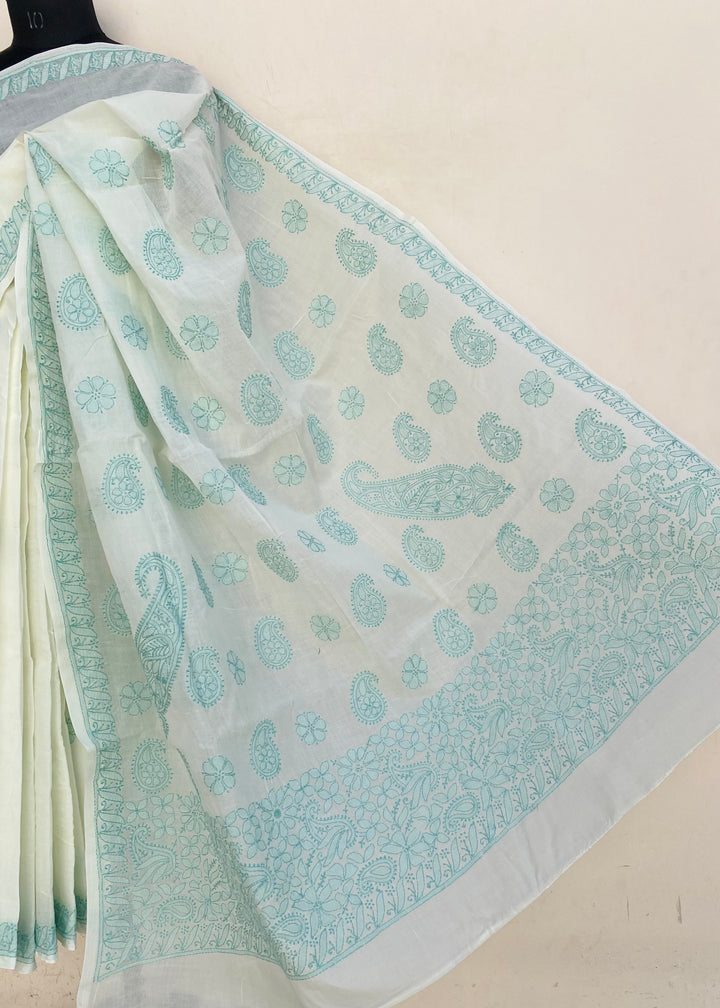 Lucknowi Chikankari Saree Off White Cotton With Blouse