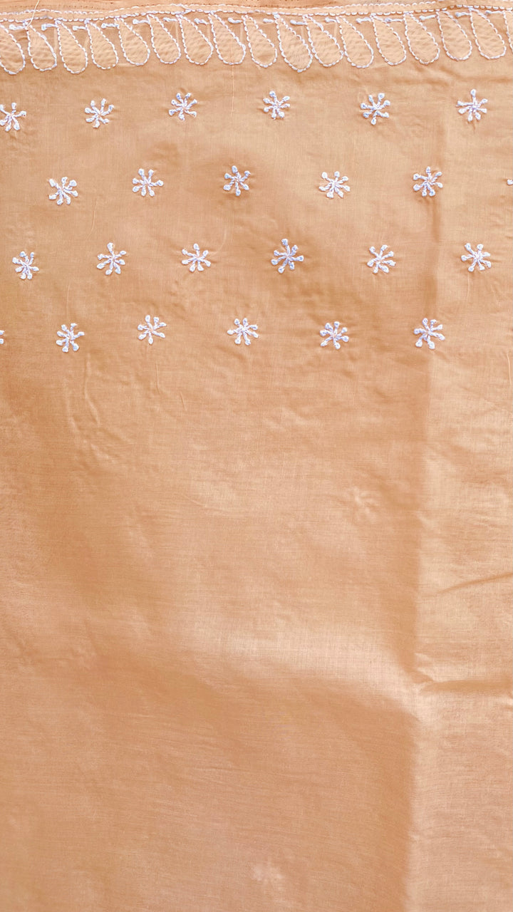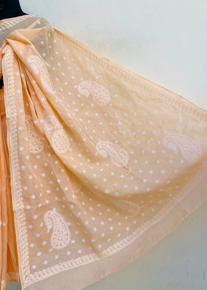 Lucknowi Chikankari Saree Peach Cotton With Blouse