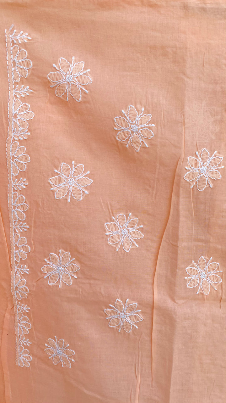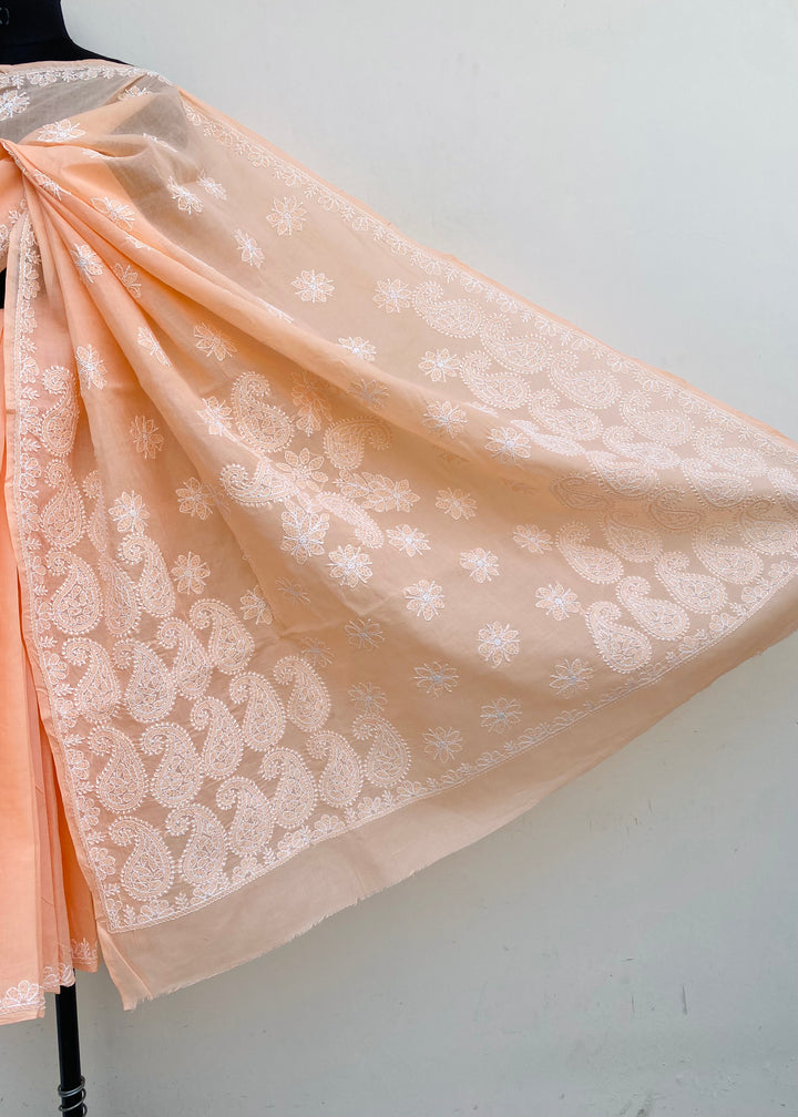 Lucknowi Chikankari Saree Peach Cotton With Blouse