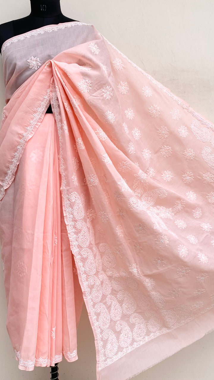 Lucknowi Chikankari Saree Peach Cotton With Blouse