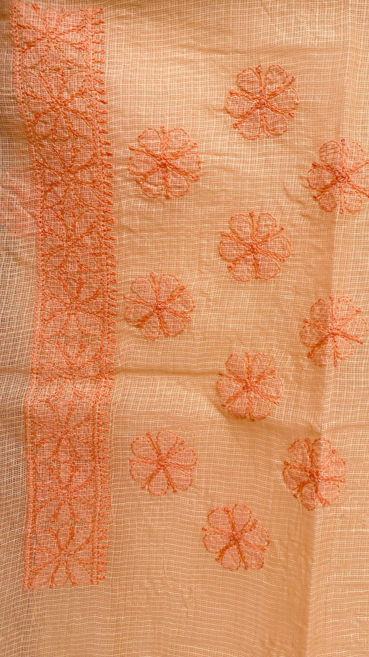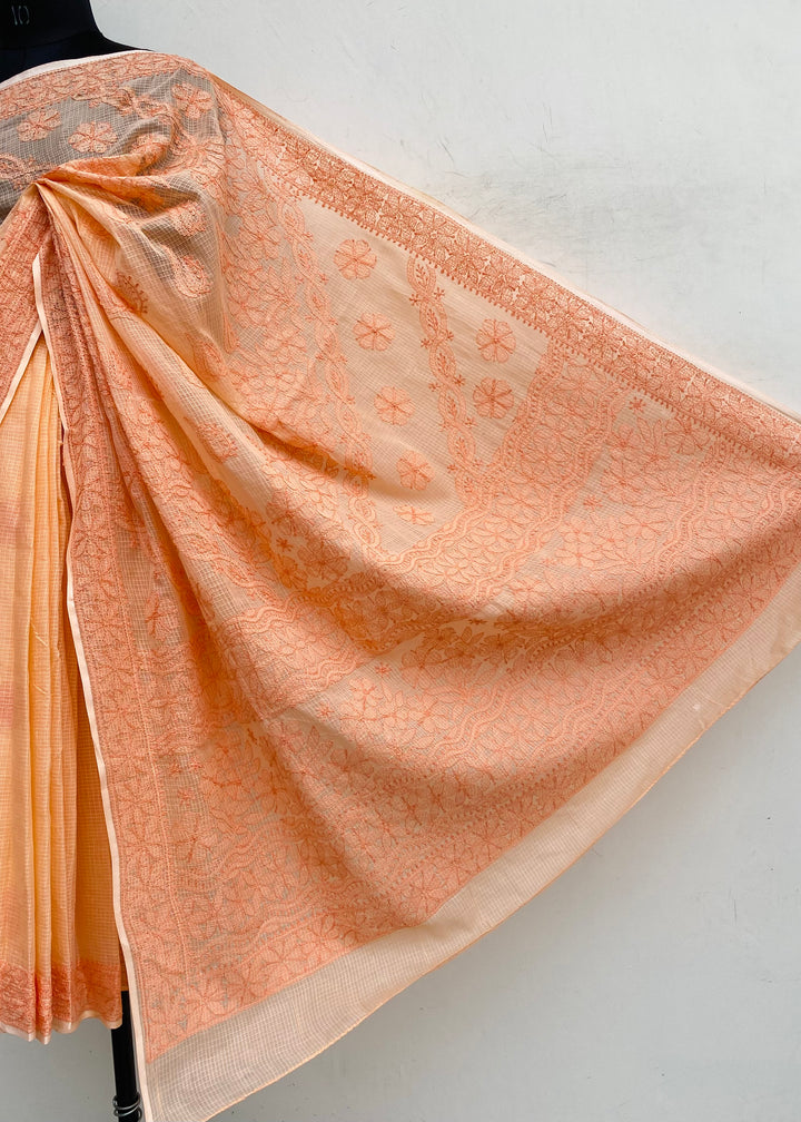 Lucknowi Chikankari Saree Peach Kota With Blouse