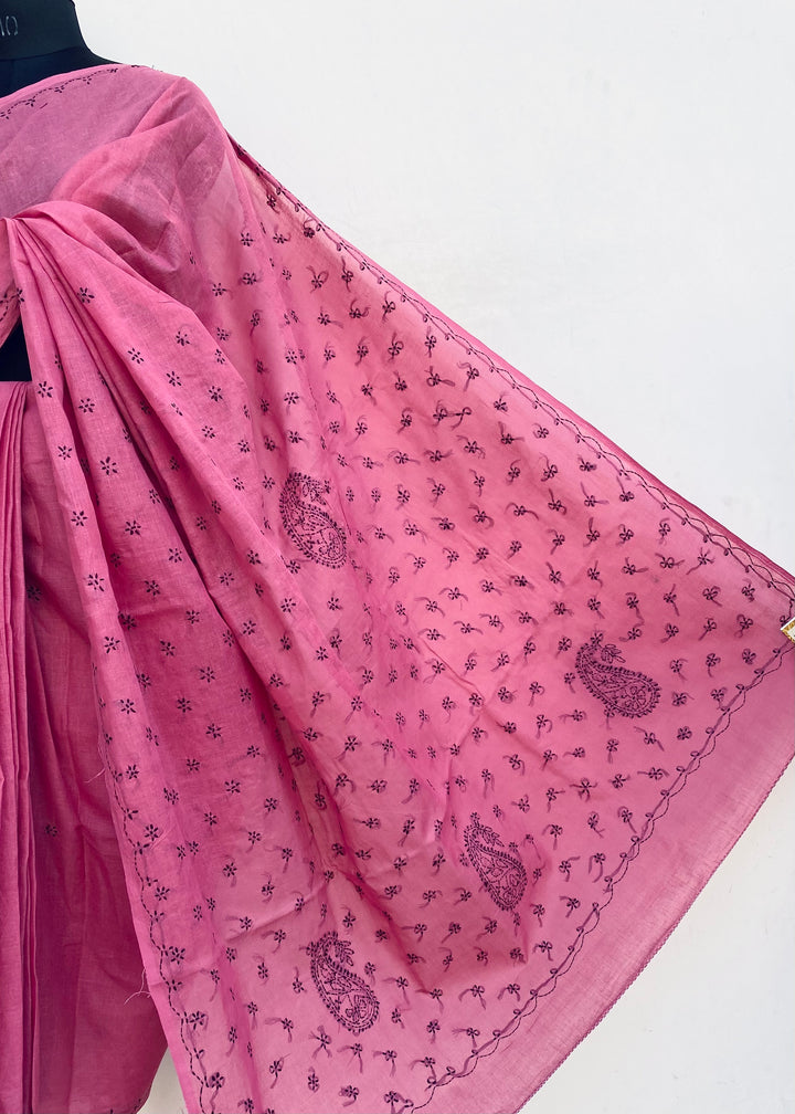 Lucknowi Chikankari Saree Pink Cotton With Blouse