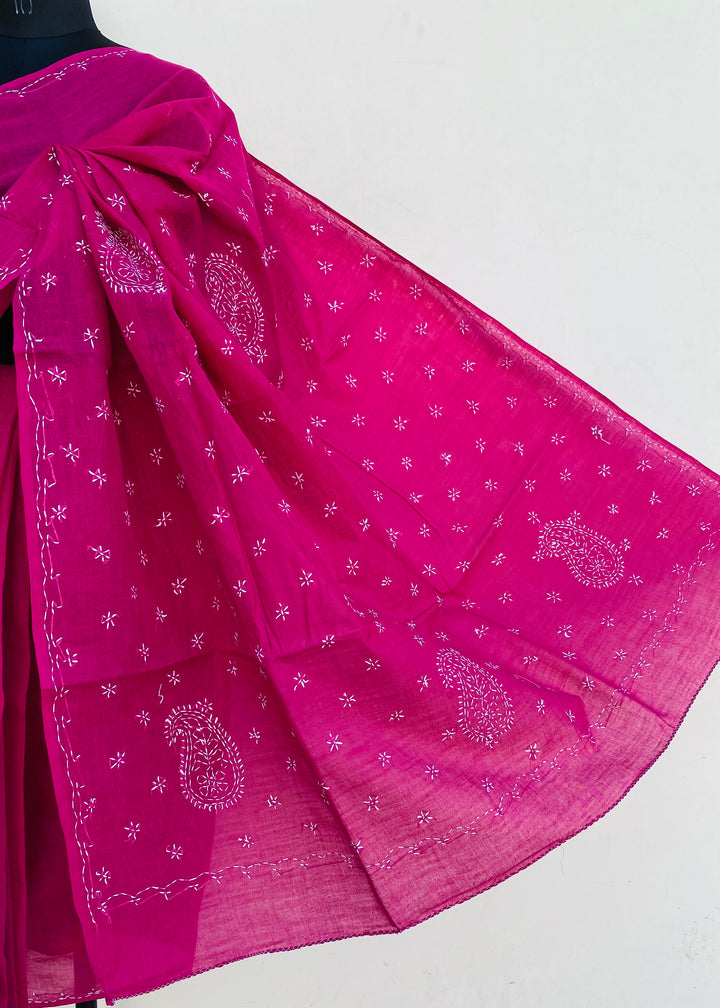 Lucknowi Chikankari Saree Pink Cotton With Blouse