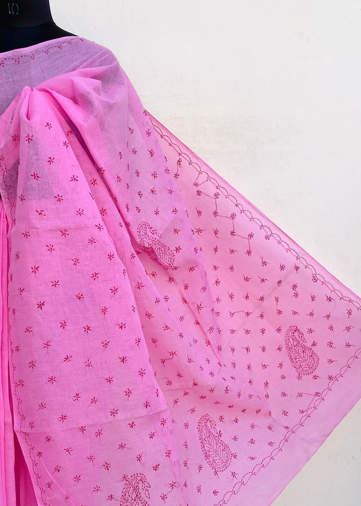 Lucknowi Chikankari Saree Pink Cotton