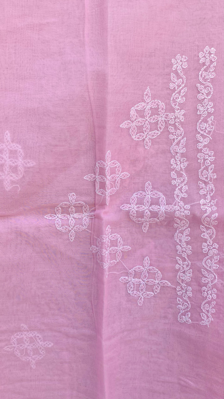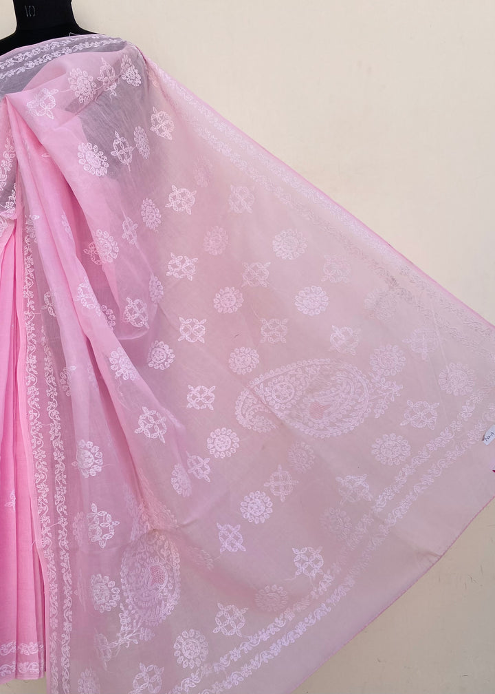 Lucknowi Chikankari Saree Pink Cotton With Jaali Work