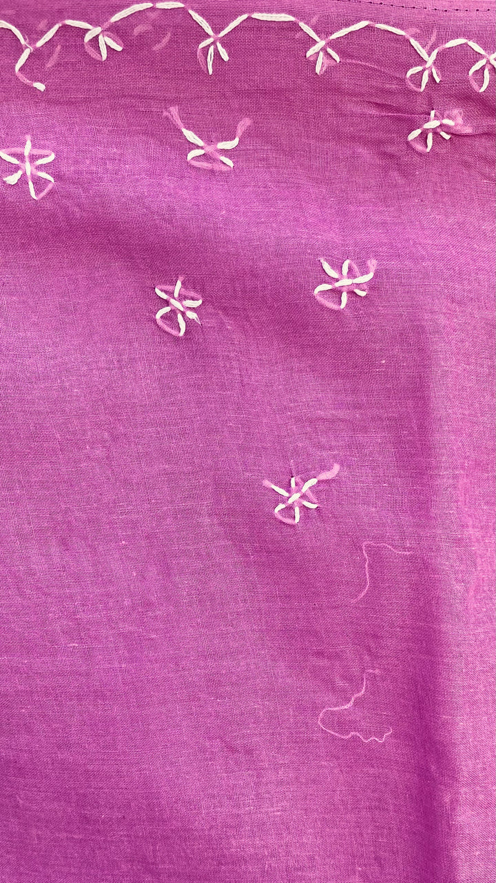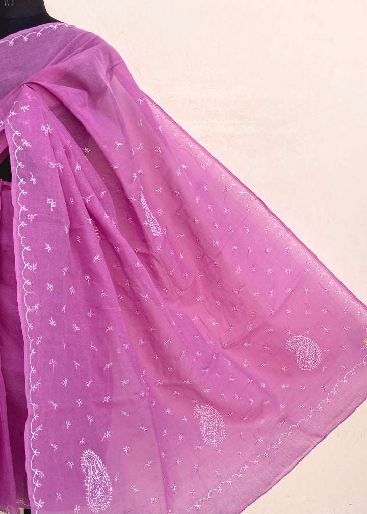 Lucknowi Chikankari Saree Purple Cotton With Blouse