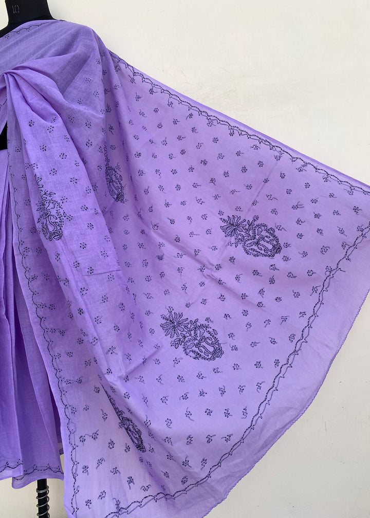 Lucknowi Chikankari Saree Purple Cotton With Blouse