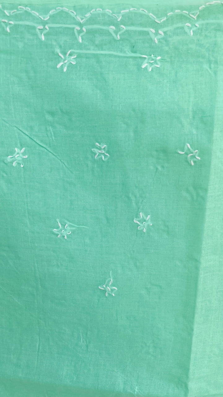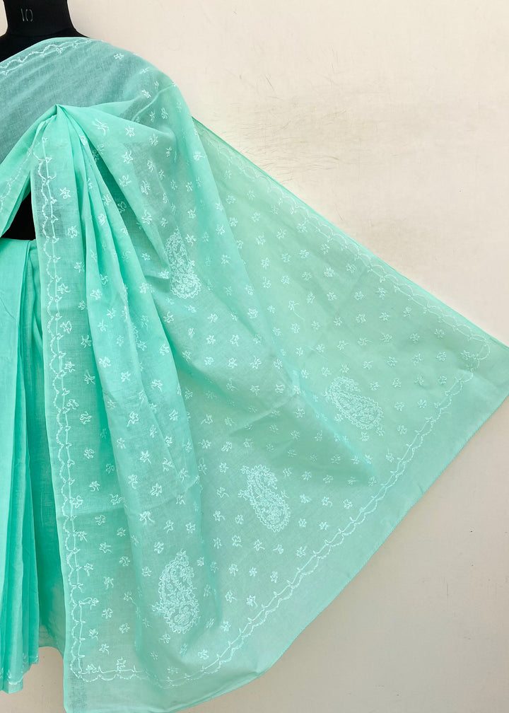 Lucknowi Chikankari Saree Sea Green Cotton With Blouse