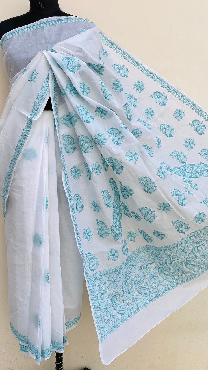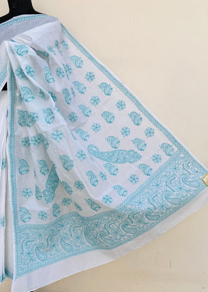 Lucknowi Chikankari Saree White Cotton With Blouse