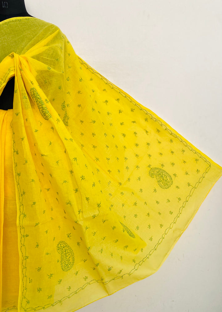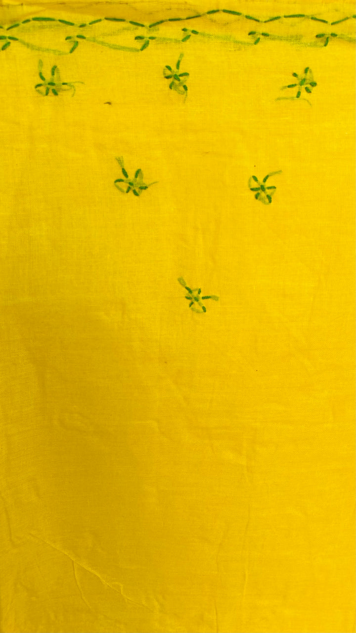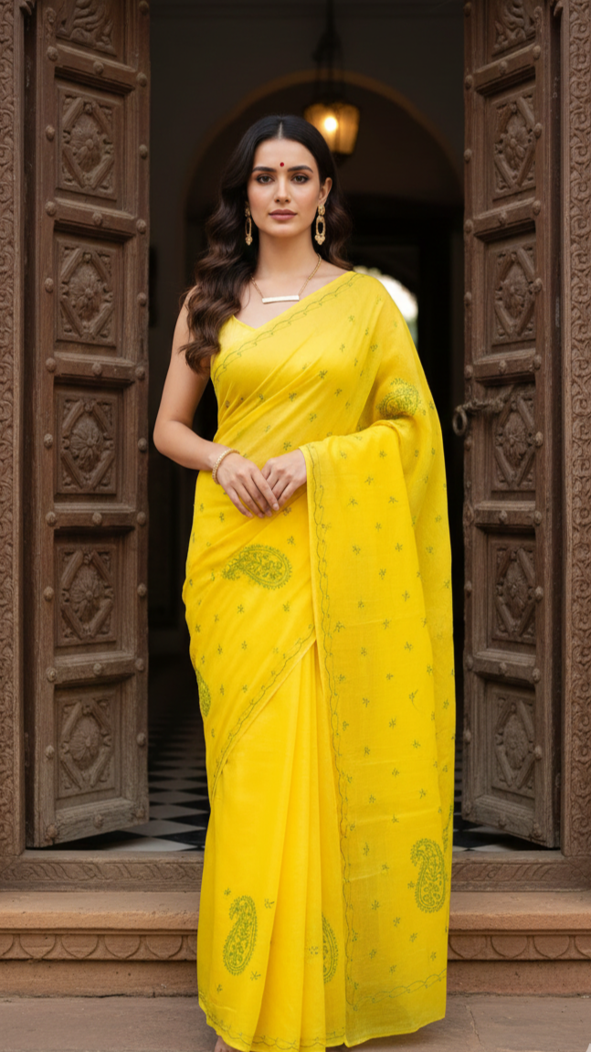 Lucknowi Chikankari Saree Yellow Cotton With Blouse