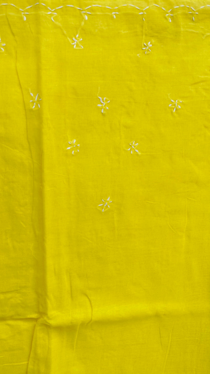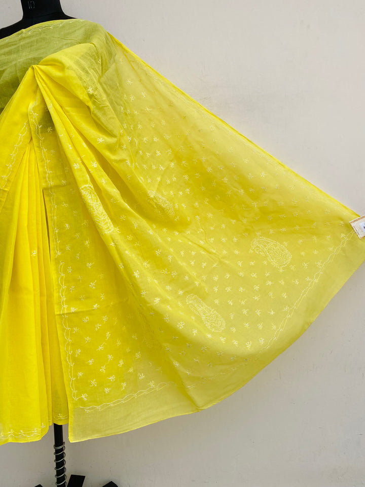 Lucknowi Chikankari Saree Yellow Cotton