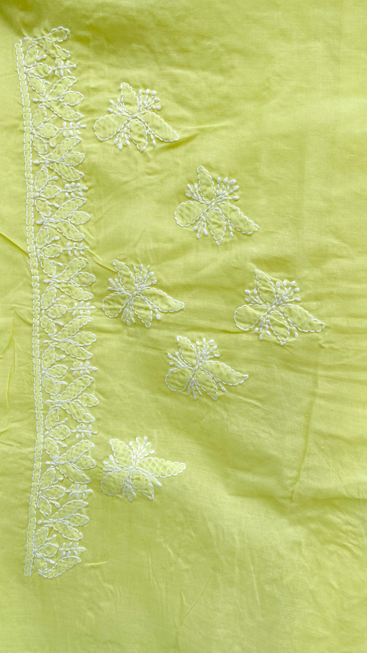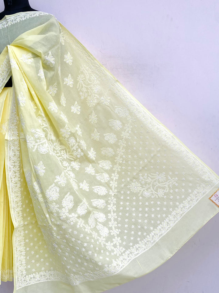 Lucknowi Chikankari Saree Yellow Cotton With Blouse