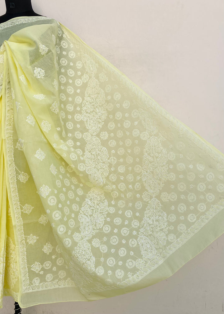 Lucknowi Chikankari Saree Yellow Cotton