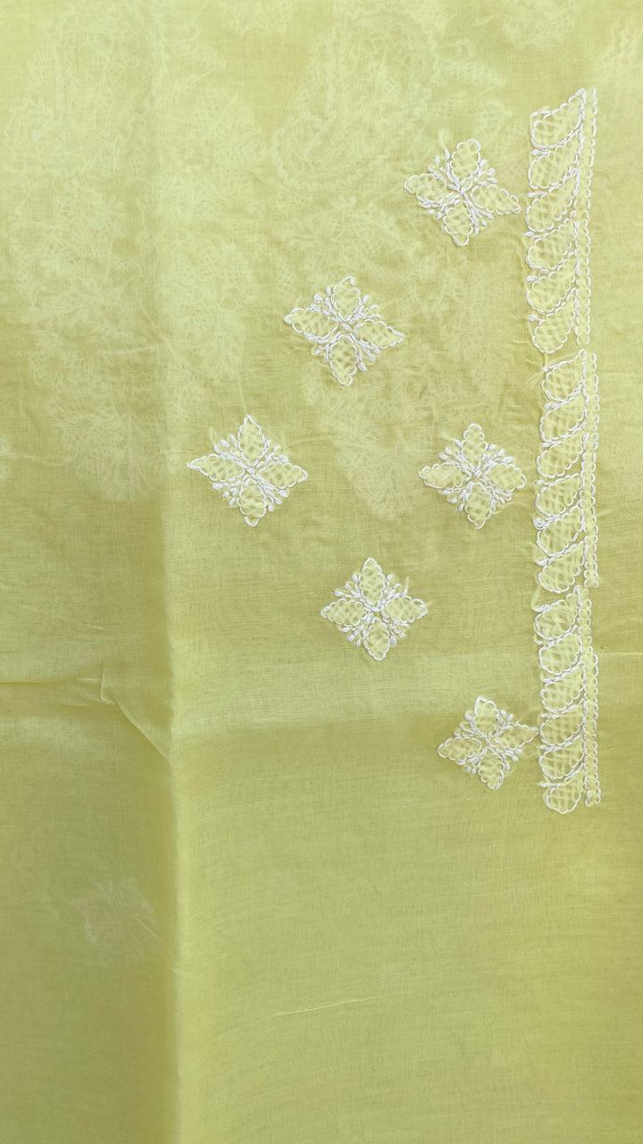 Lucknowi Chikankari Saree Yellow Cotton With Blouse