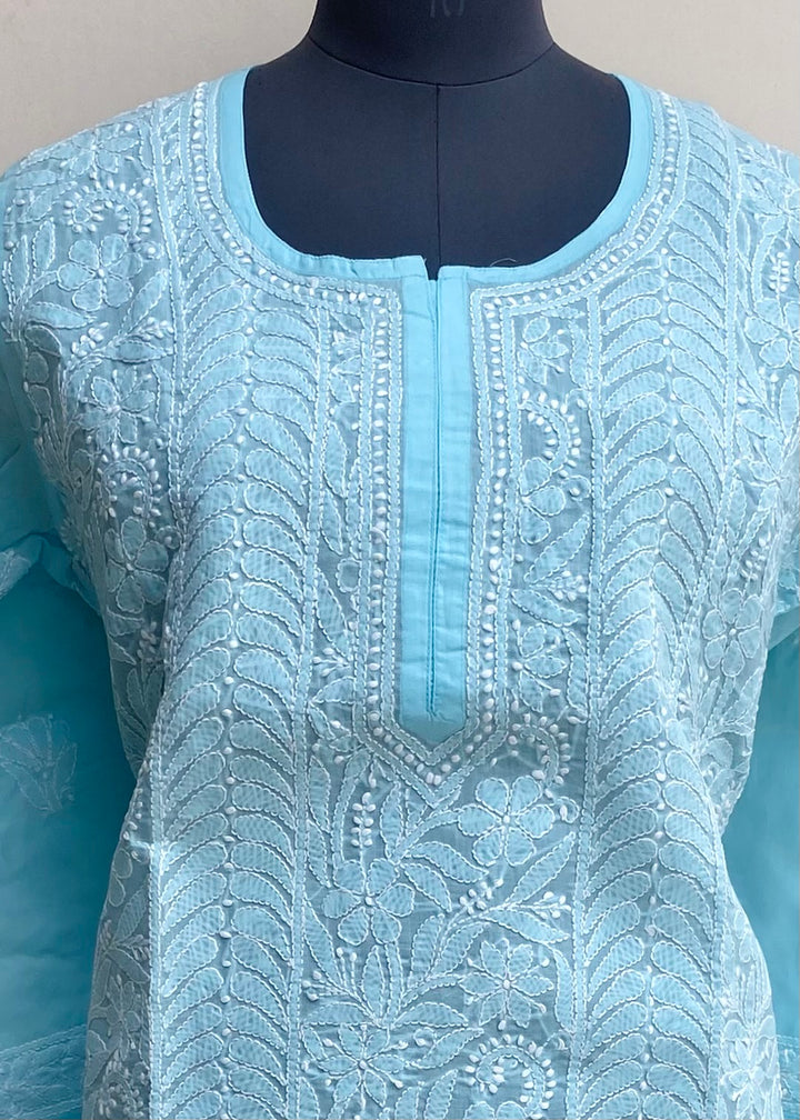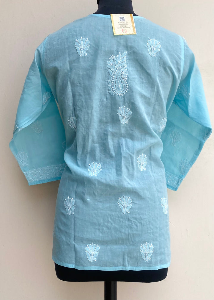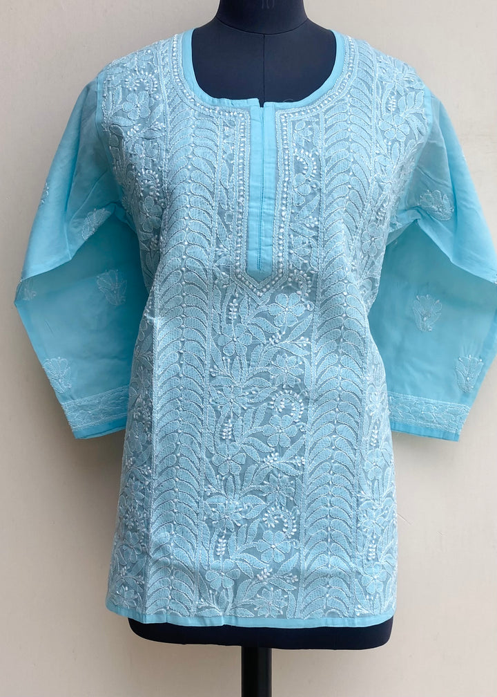 Lucknowi Chikankari Short Kurti Blue Cotton