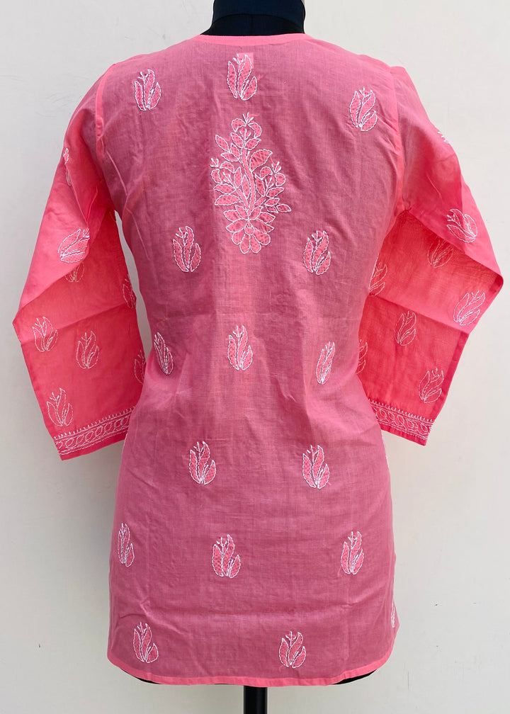 Lucknowi Chikankari Short Kurti Pink Cotton