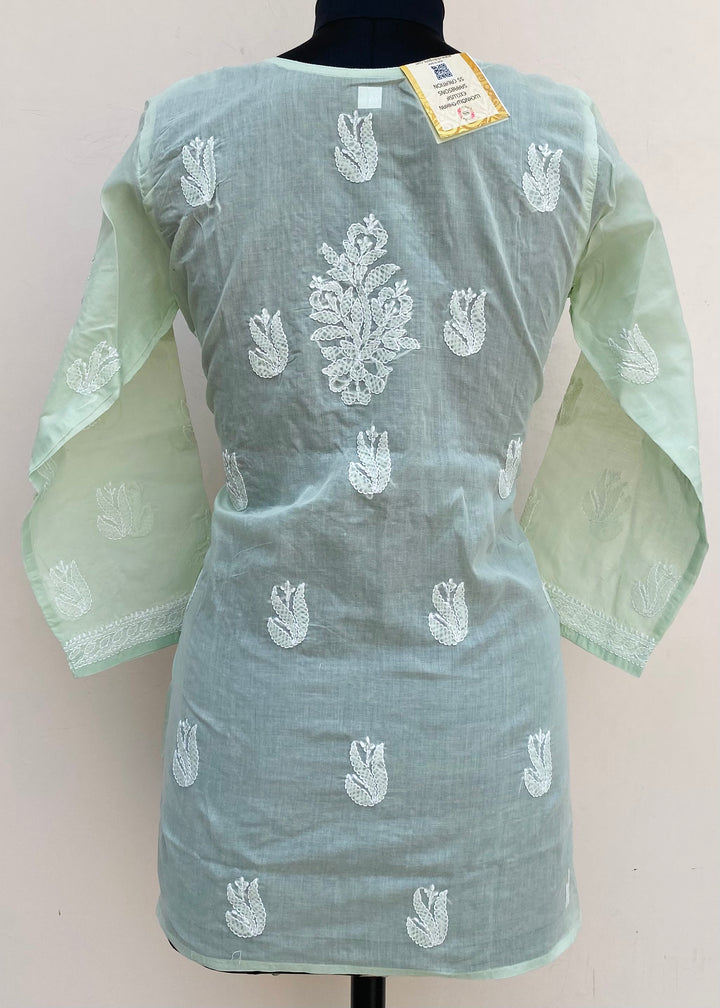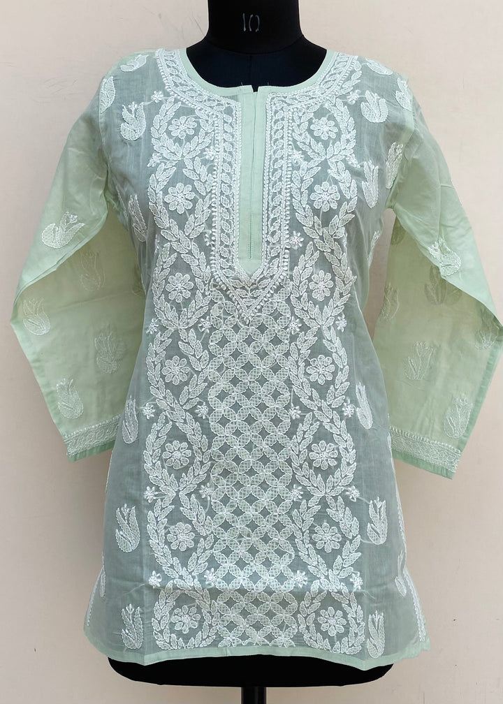 Lucknowi Chikankari Short Kurti Pista Green Cotton