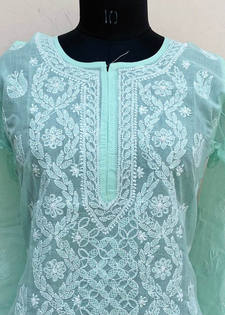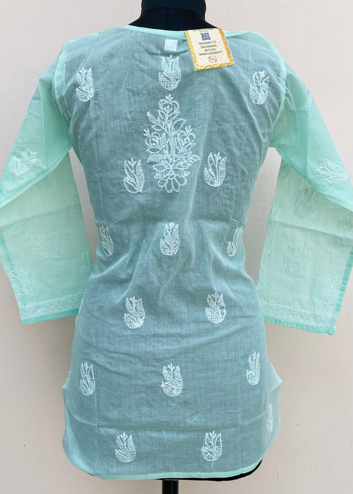 Lucknowi Chikankari Short Kurti Sea Green Cotton