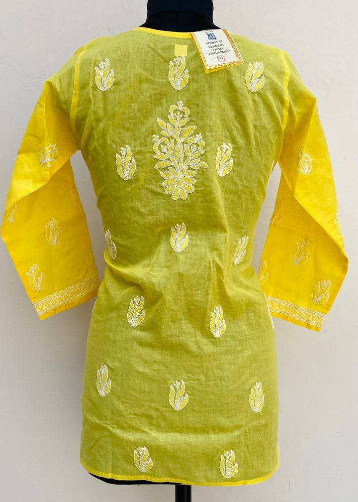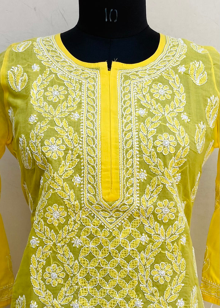 Lucknowi Chikankari Short Kurti Yellow Cotton