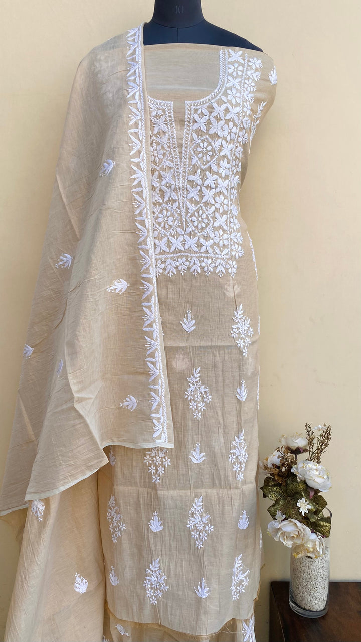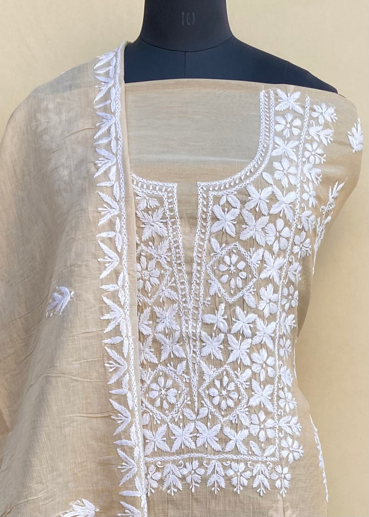 Lucknowi Chikankari Suit Length 2 Piece Beige Tissue