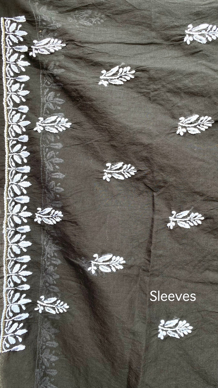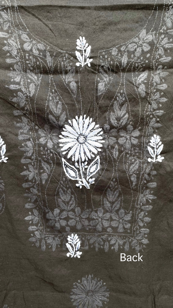 Lucknowi Chikankari Suit Length 2 Piece Black Mal Chanderi With Sequence ,Pearl & Cutdana Work