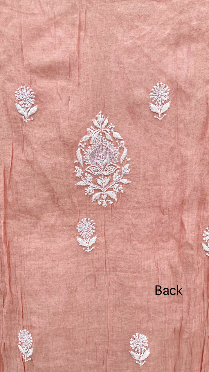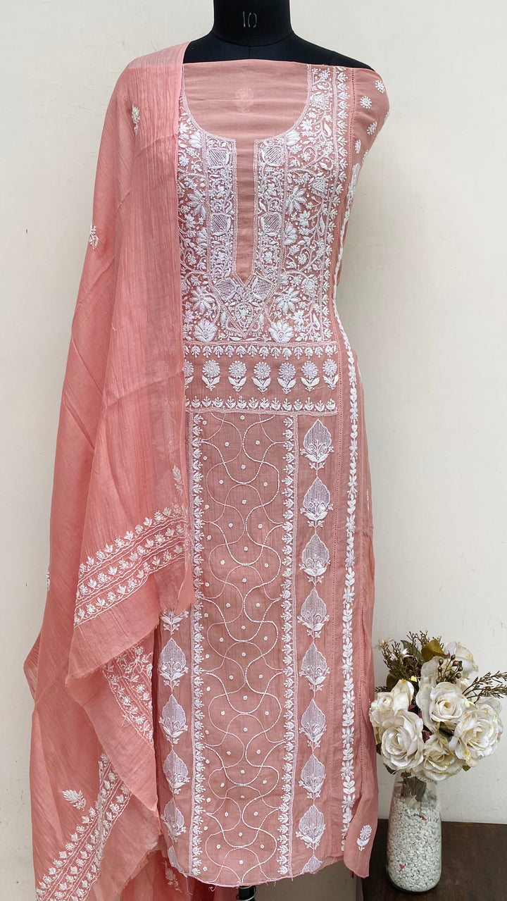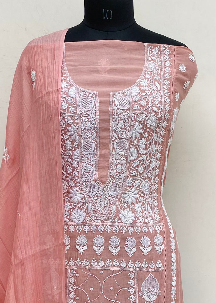 Lucknowi Chikankari Suit Length 2 Piece Copper Mal Chanderi With Cutdana ,Pearl & Sequence Work With Embroidered Mal Chanderi Dupatta