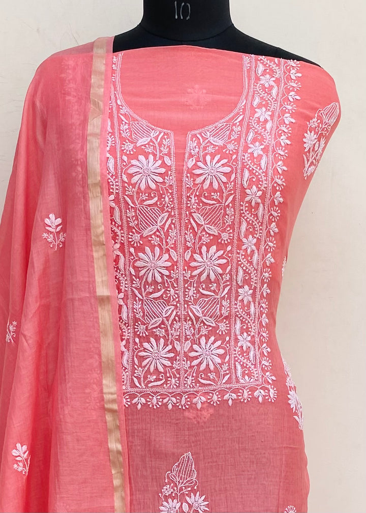 Lucknowi Chikankari Suit Length 2 Piece Gajri Mal Chanderi With Cutdana Work