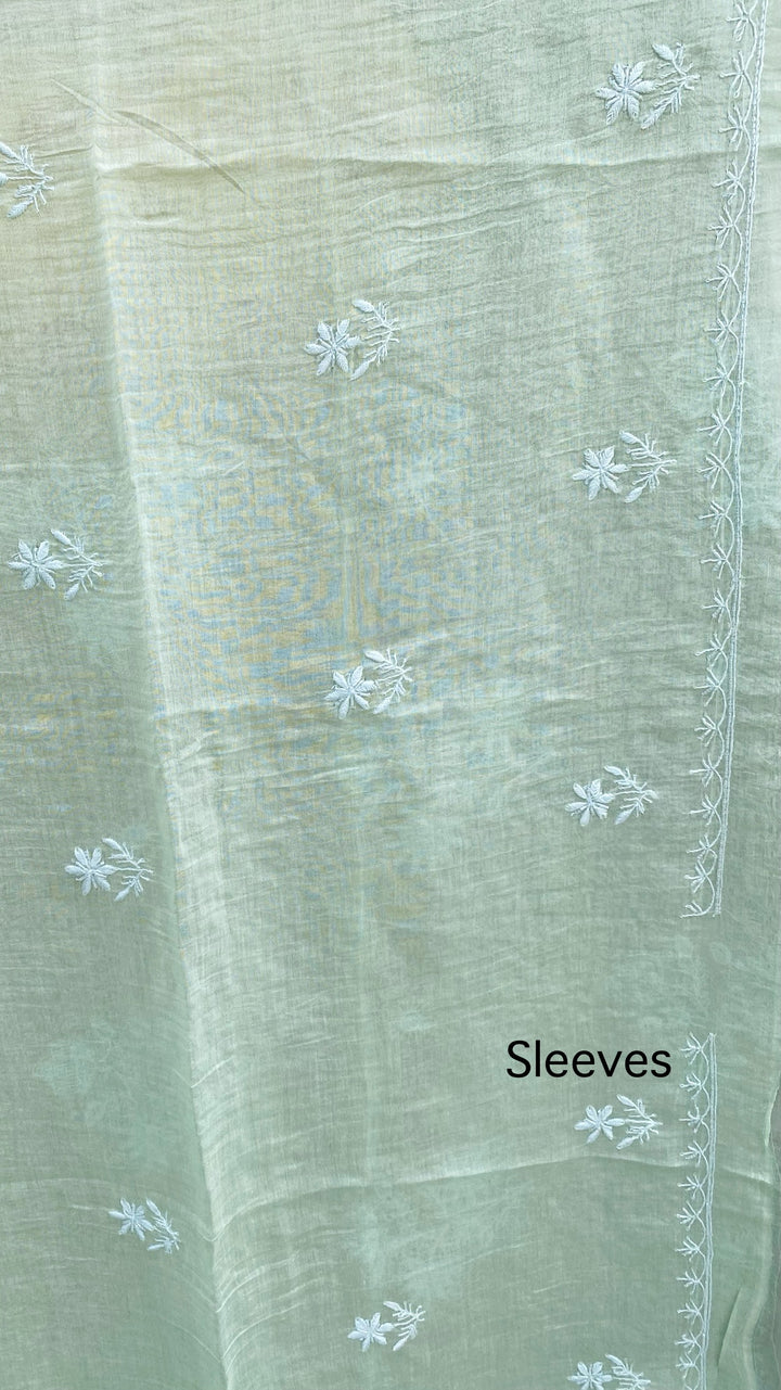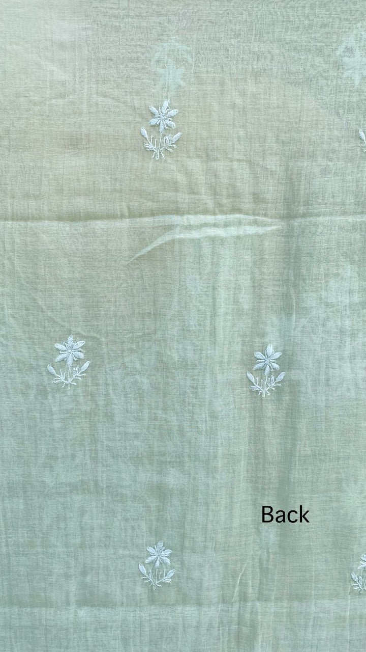 Lucknowi Chikankari Suit Length 2 Piece Green Mal Chanderi With Cutdana Work