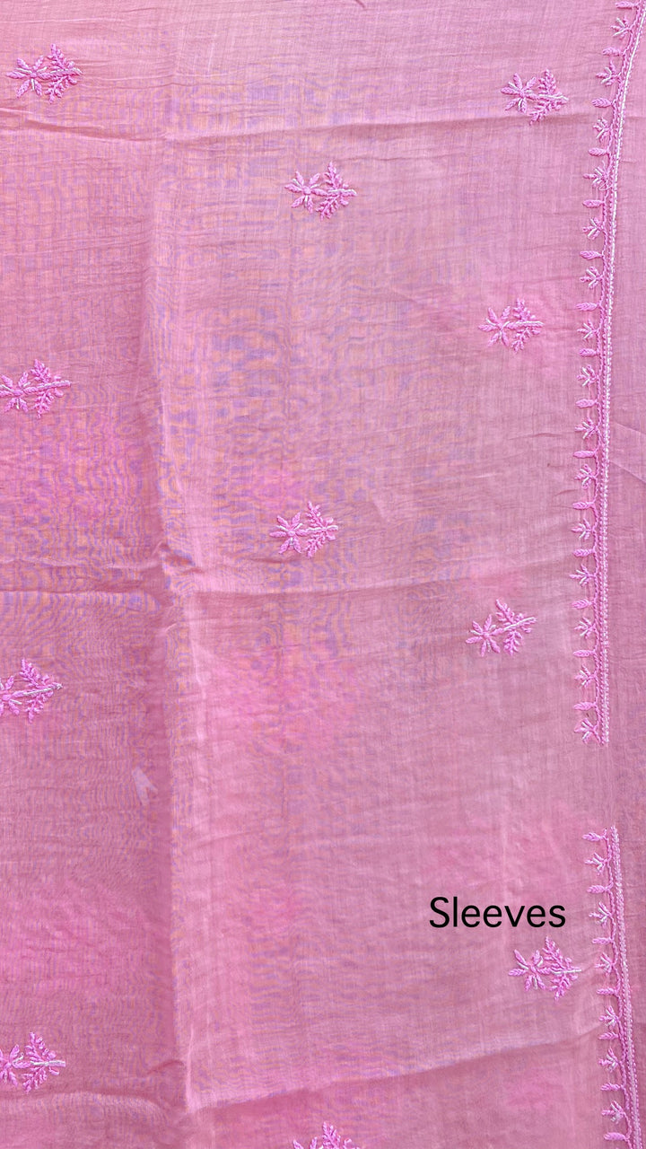 Lucknowi Chikankari Suit Length 2 Piece Pink Mal Chanderi With Cutdana Work