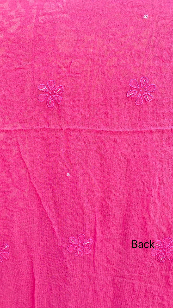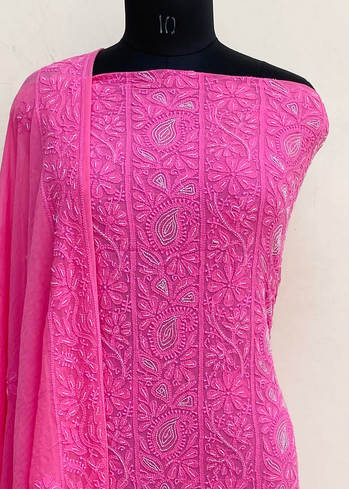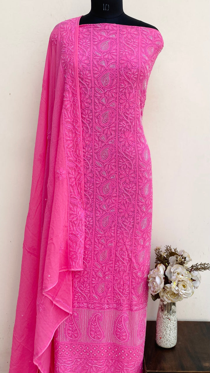 Lucknowi Chikankari Suit Length 2 Piece Pink Pure Georgette With Cutdana Work With Embroidered Pure Georgette Dupatta