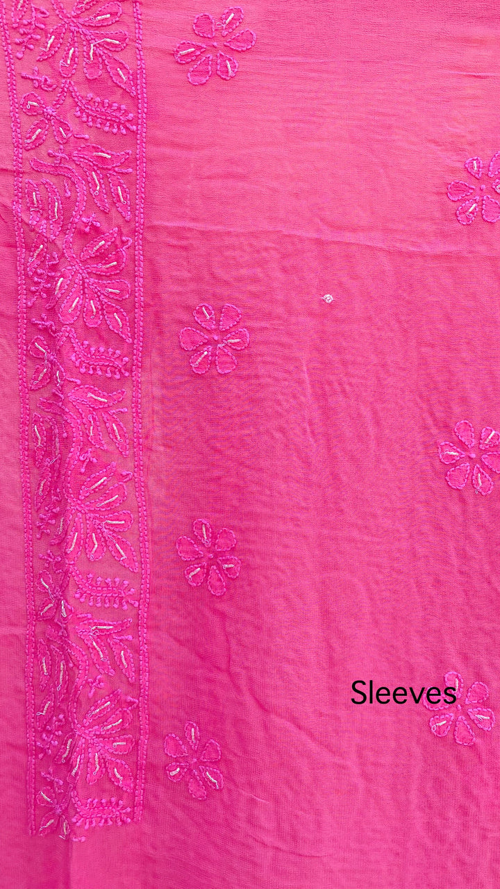 Lucknowi Chikankari Suit Length 2 Piece Pink Pure Georgette With Cutdana Work