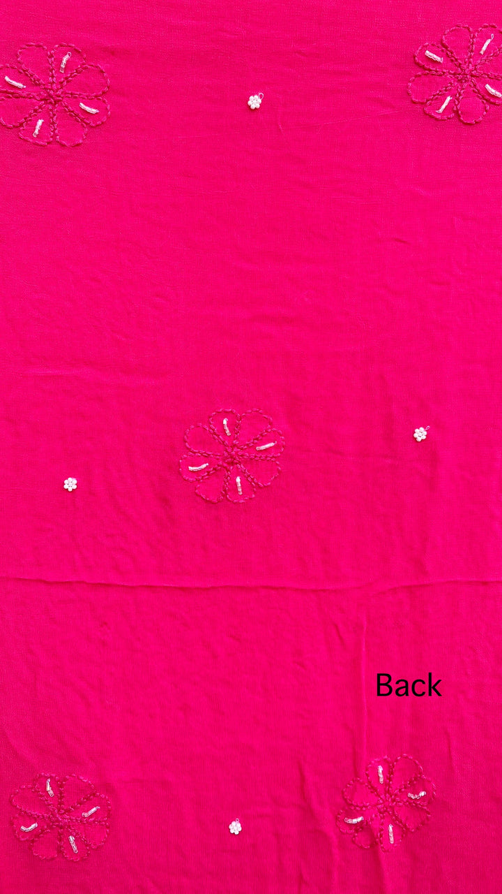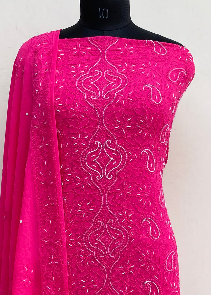 Lucknowi Chikankari Suit Length 2 Piece Pink Pure Georgette With Pearl & Cutdana Work With Embroidered Pure Georgette Dupatta