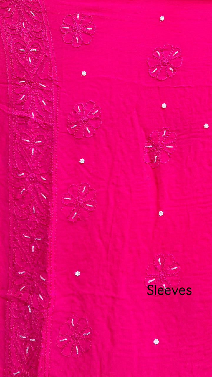 Lucknowi Chikankari Suit Length 2 Piece Pink Pure Georgette With Pearl & Cutdana Work