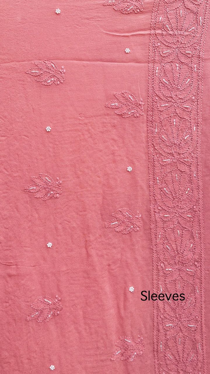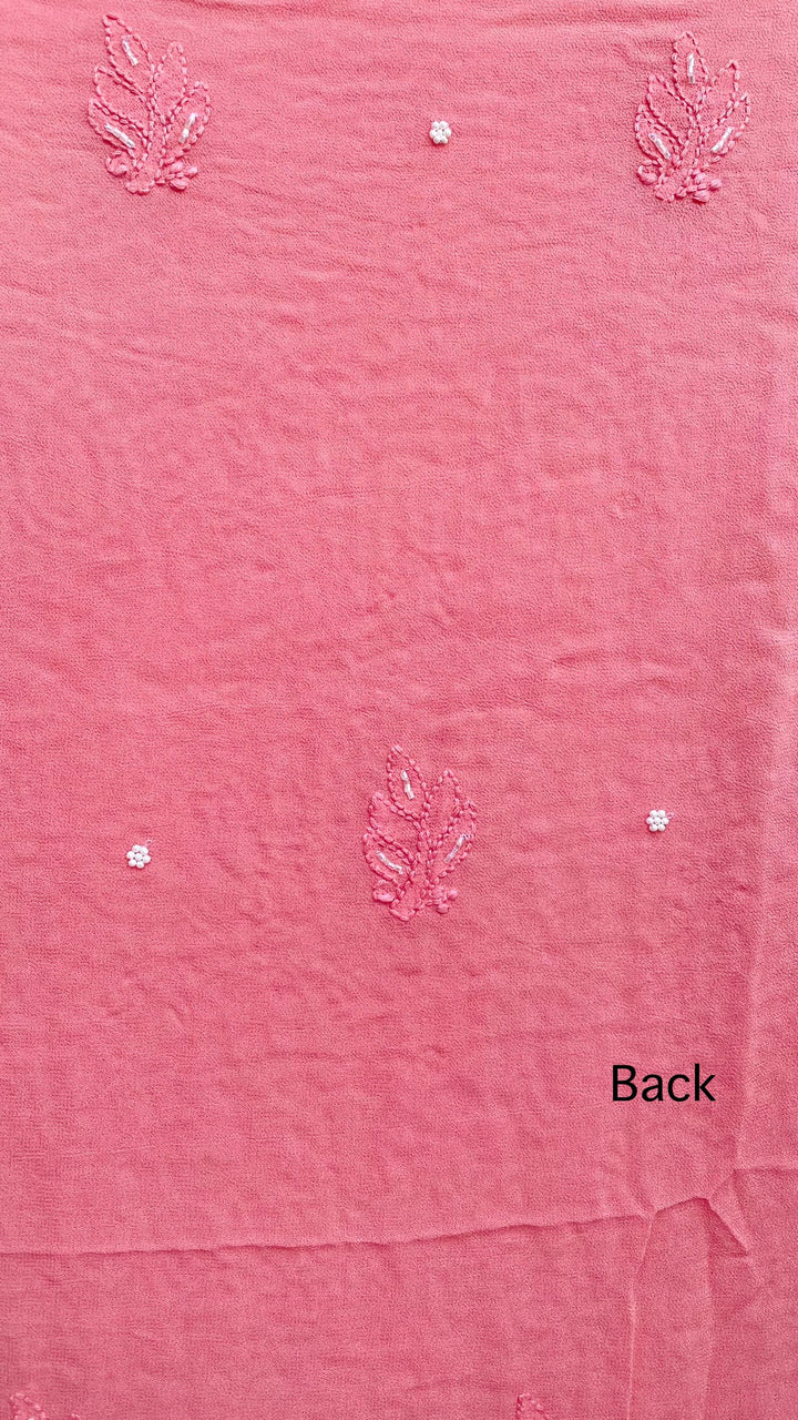 Lucknowi Chikankari Suit Length 2 Piece Pink Pure Georgette With Pearl & Cutdana Work