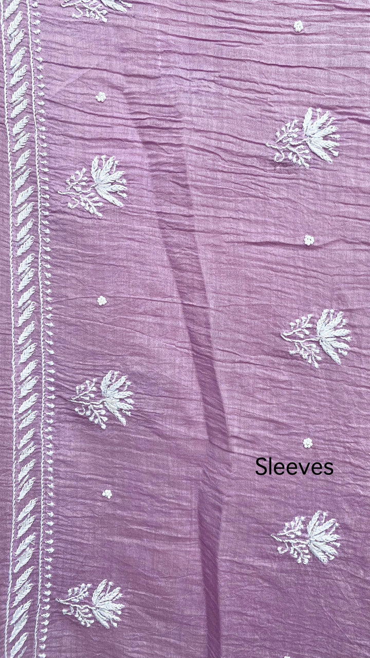 Lucknowi Chikankari Suit Length 2 Piece Purple Mal Chanderi With Pearl & Cutdana Work