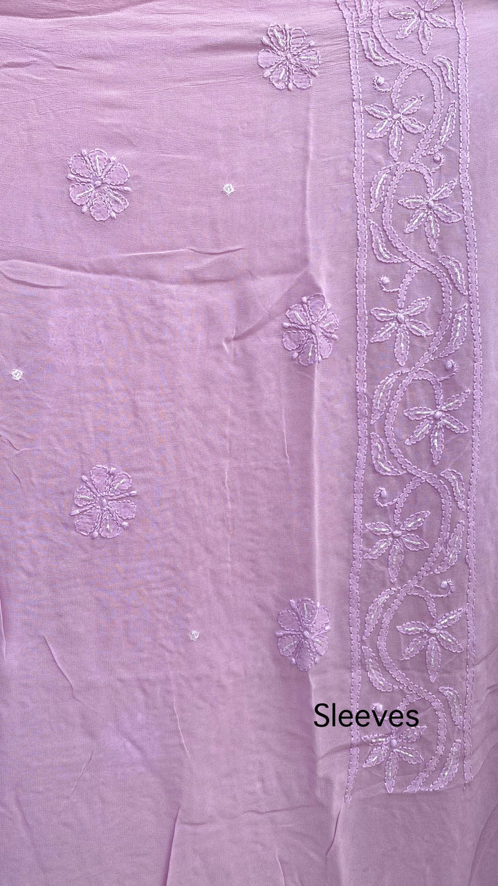 Lucknowi Chikankari Suit Length 2 Piece Purple Pure Georgette With Cutdana Work
