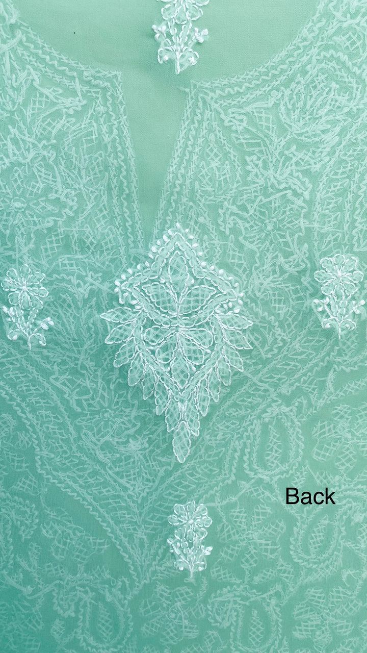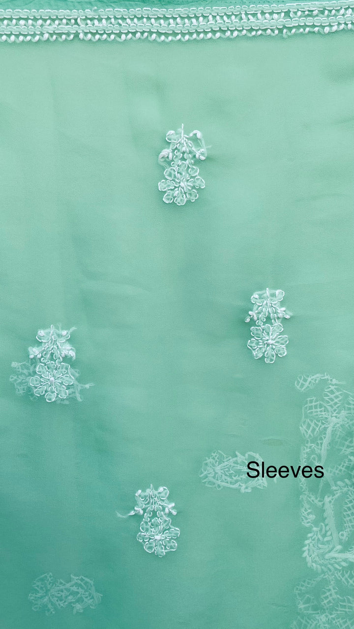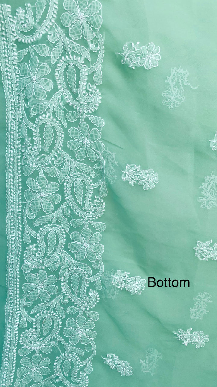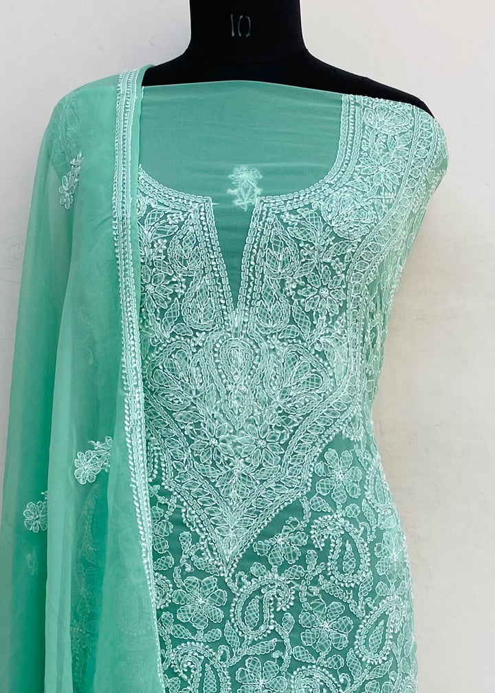 Lucknowi Chikankari Suit Length 3 Piece Green Georgette With Embroidered Georgette Dupatta & Embroidered Same Colour Georgette Bottom