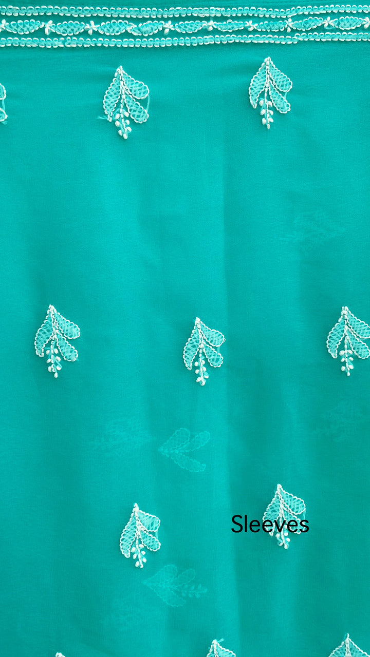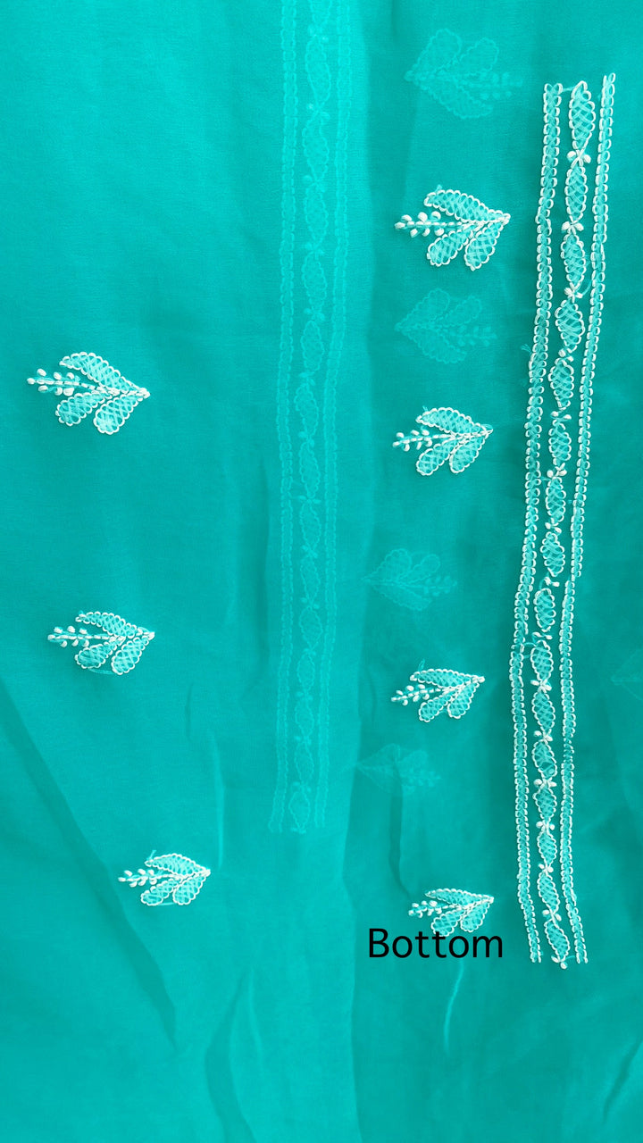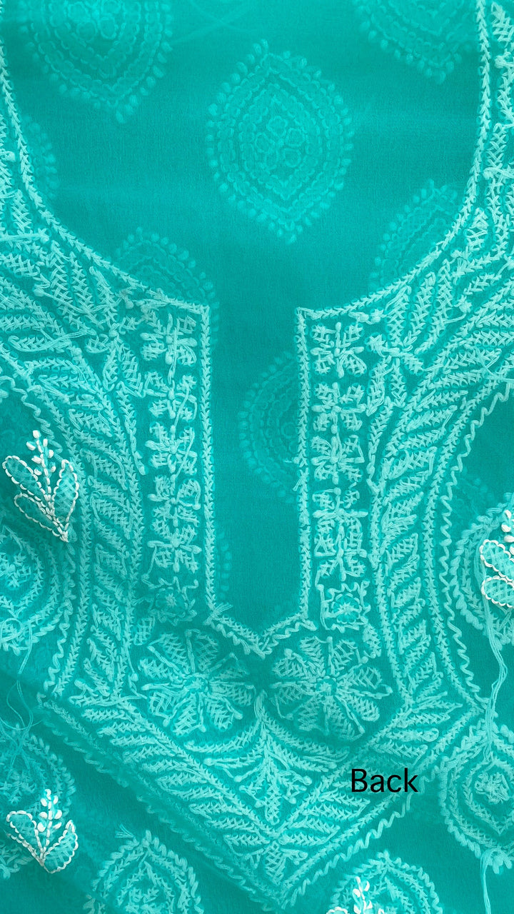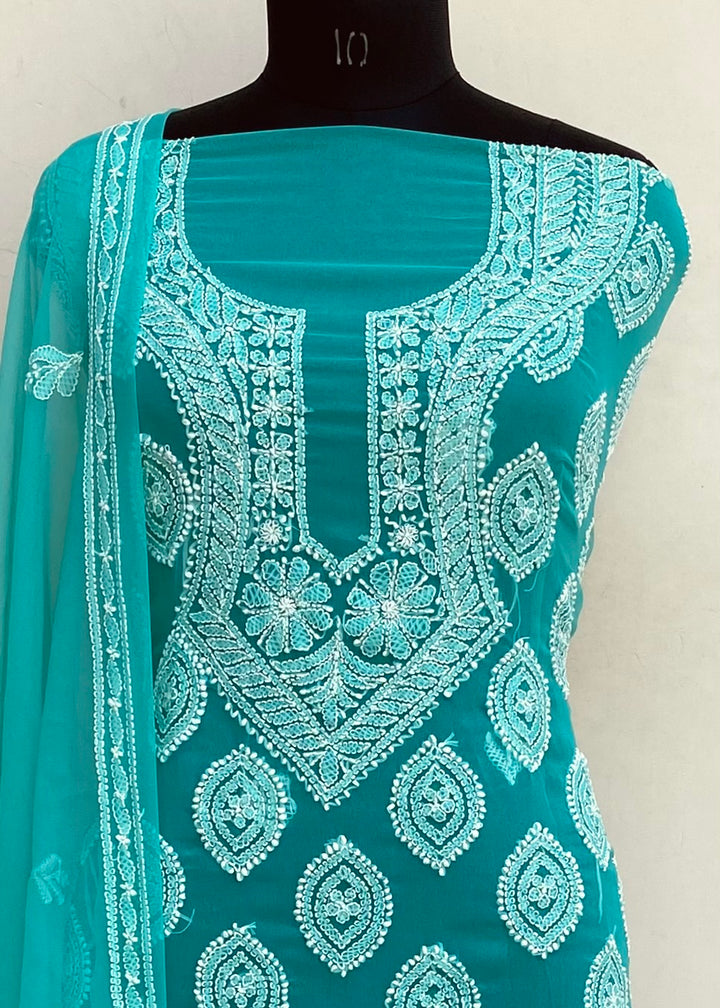 Lucknowi Chikankari Suit Length 3 Piece Sea Green Georgette With Embroidered Georgette Dupatta & Embroidered Same Colour Georgette Bottom