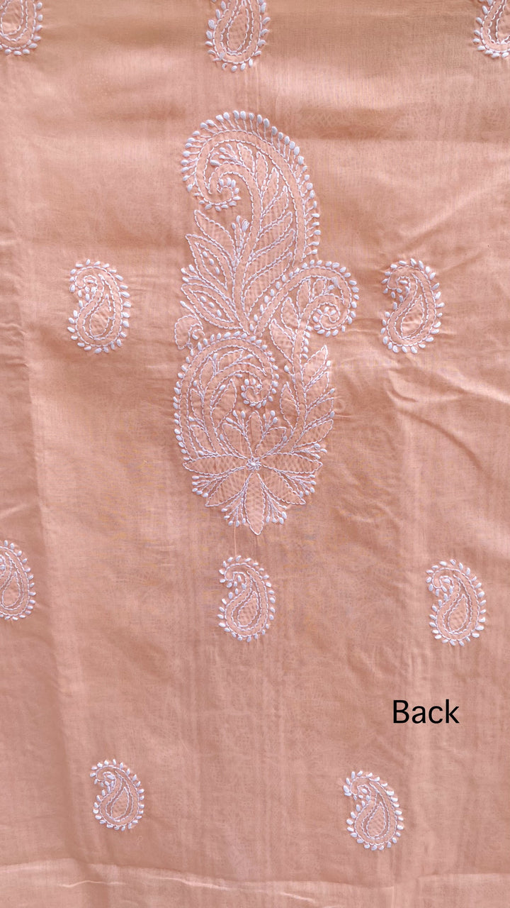 Lucknowi Chikankari Suit Length 3 Piece Peach Cotton Jaali Work