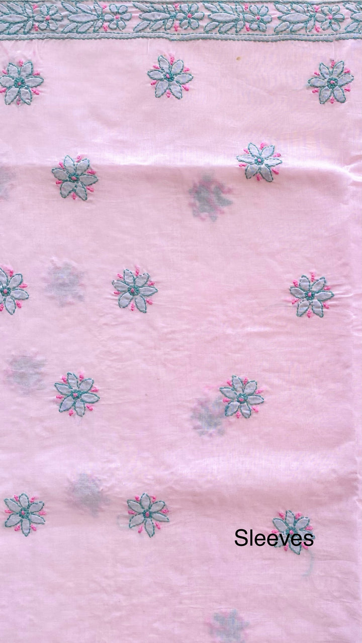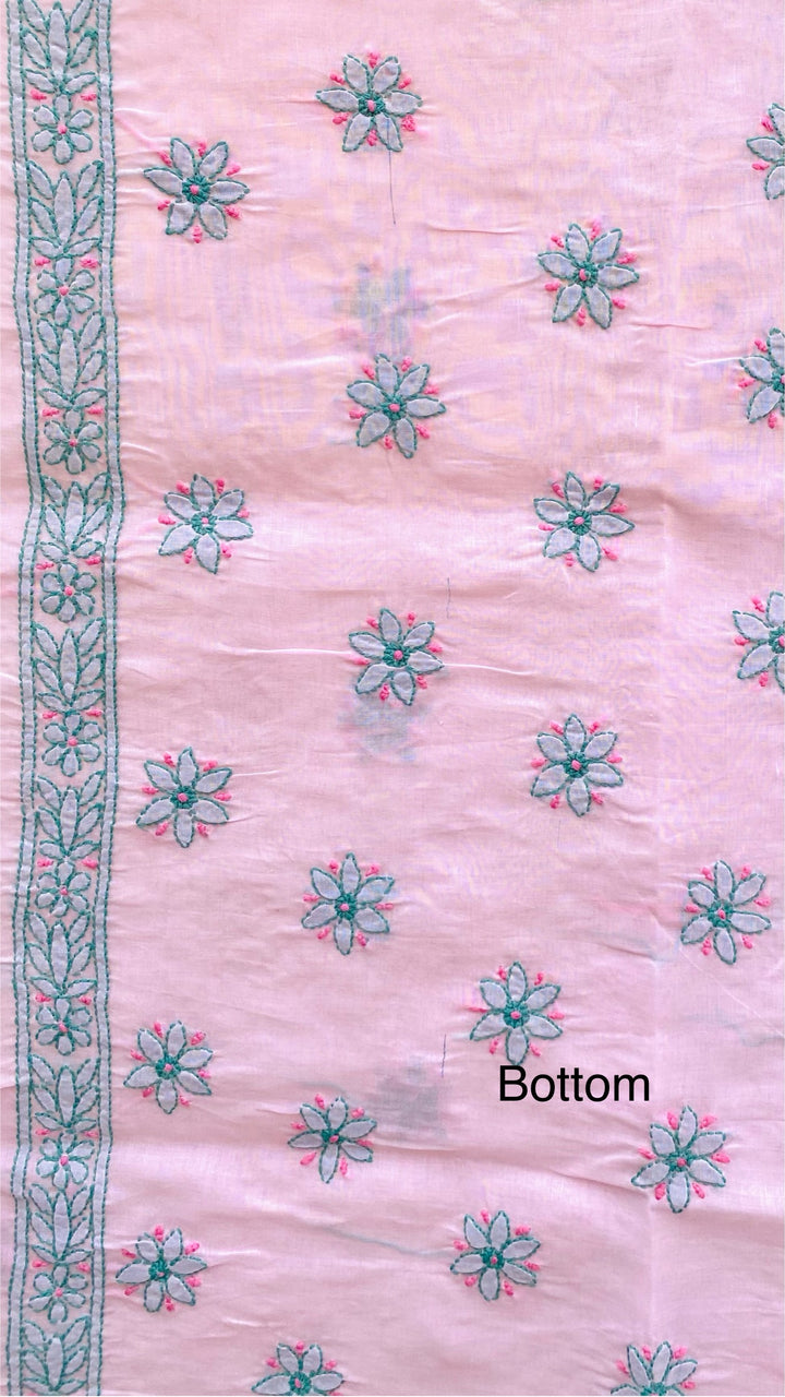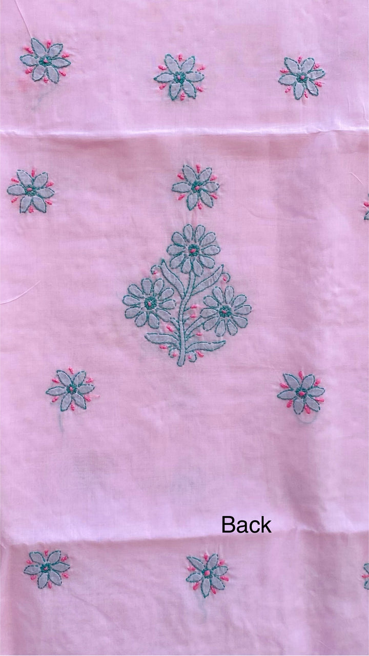 Lucknowi Chikankari Suit Length 3 Piece Pink Cotton