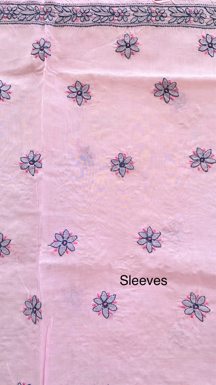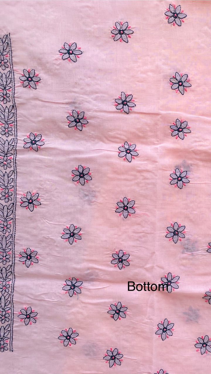 Lucknowi Chikankari Suit Length 3 Piece Pink Cotton