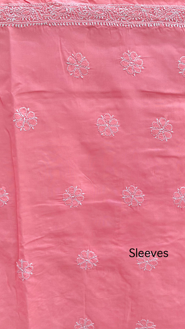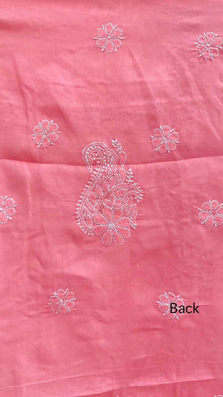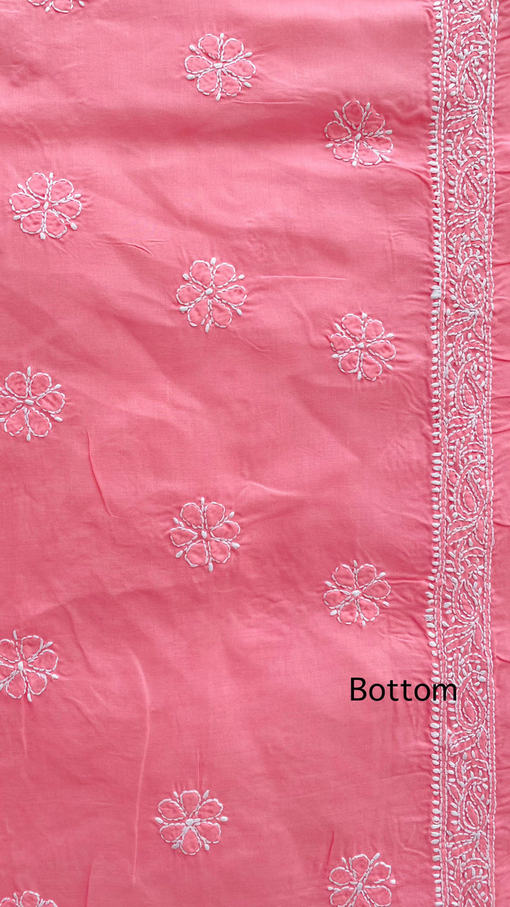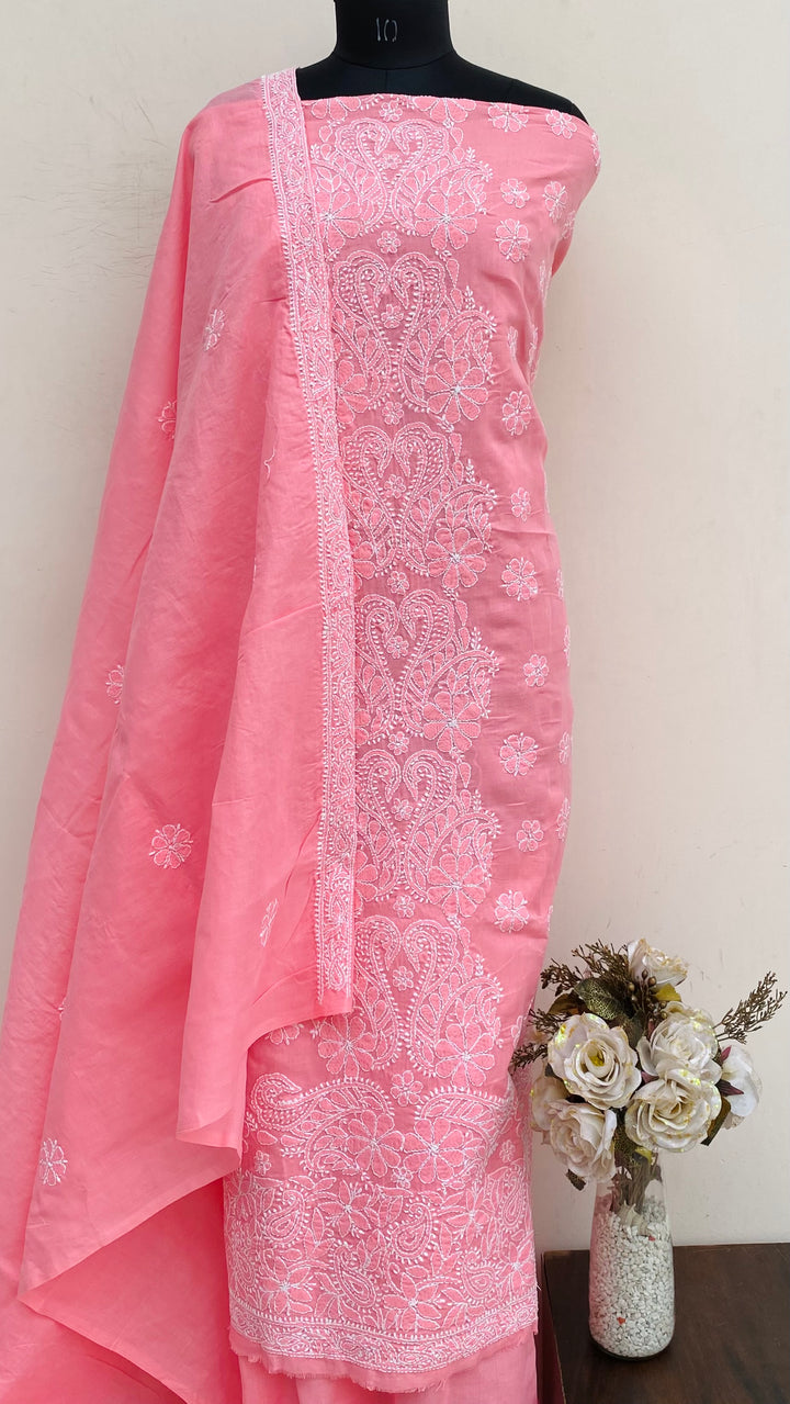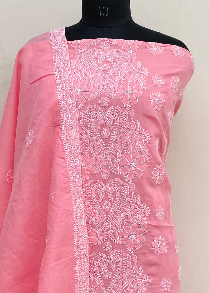 Lucknowi Chikankari Suit Length 3 Piece Pink Cotton With Embroidered Cotton Dupatta & Embroidered Same Colour Cotton Bottom