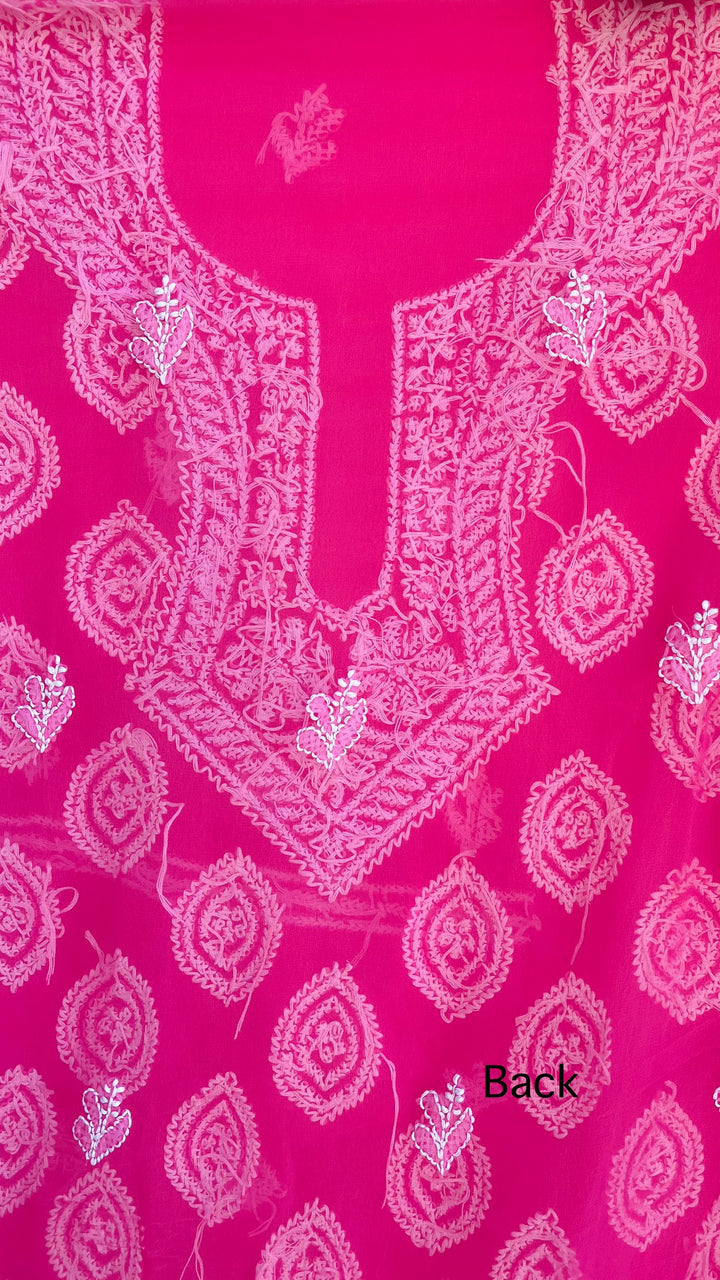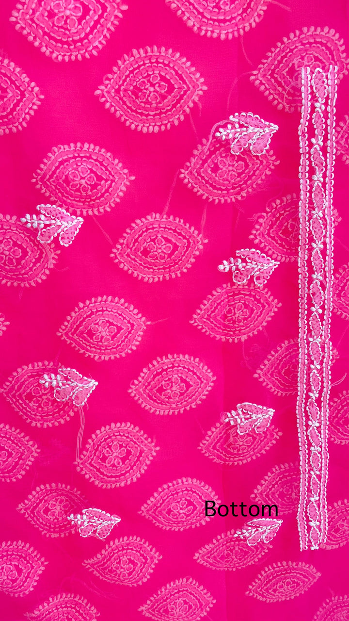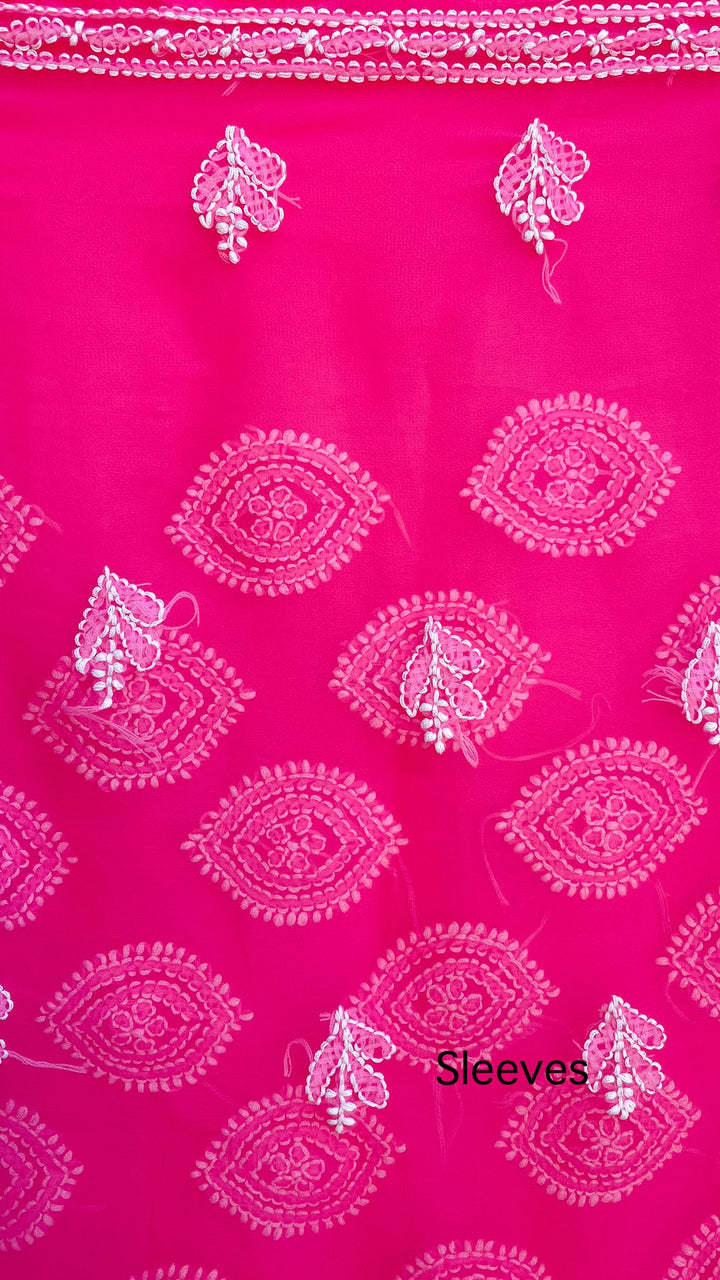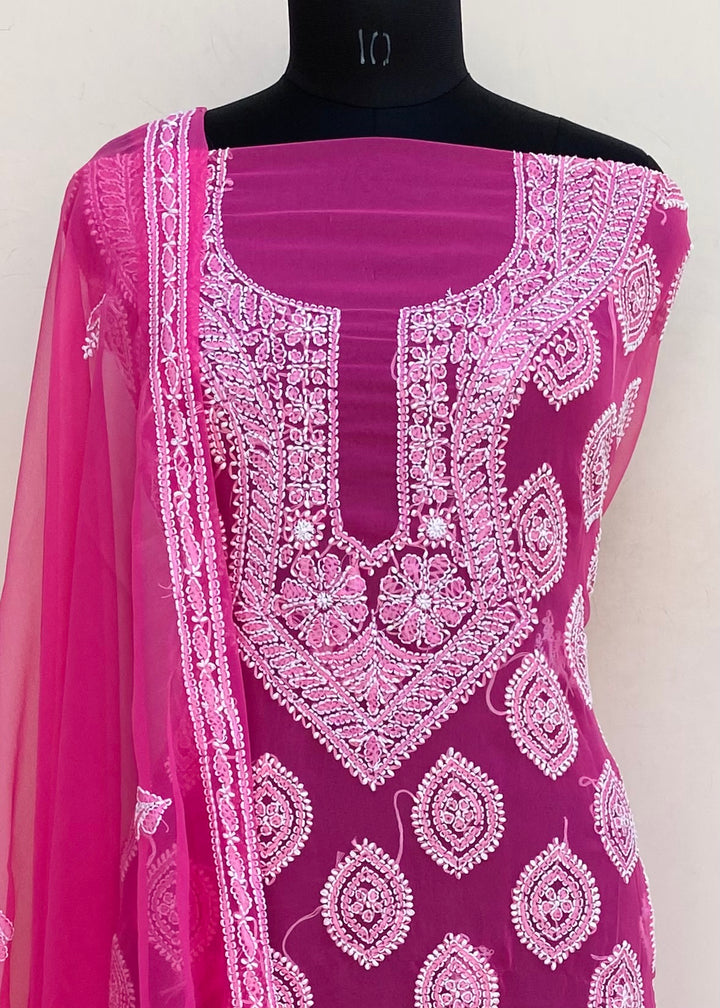 Lucknowi Chikankari Suit Length 3 Piece Pink Georgette With Embroidered Georgette Dupatta & Embroidered Same Colour Georgette Bottom